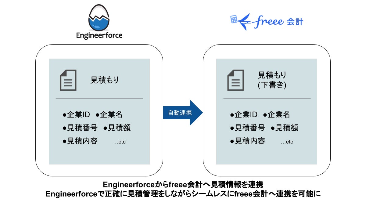 Engineerforceで作成した見積り情報をfreee会計へ連携し、freee会計にも見積書を下書きとして作成することがする事ができます。