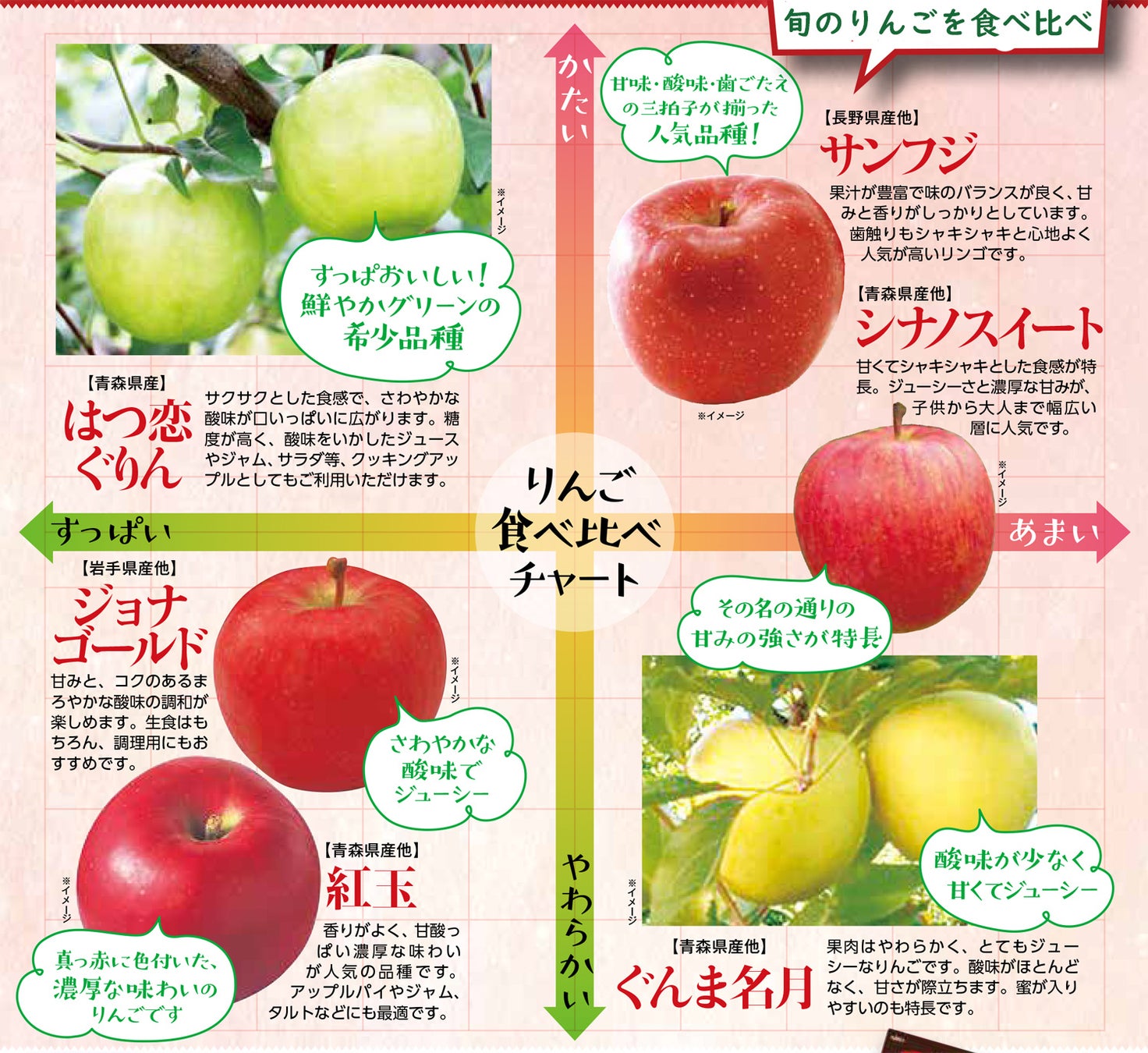 - 旬のりんごを食べ比べ