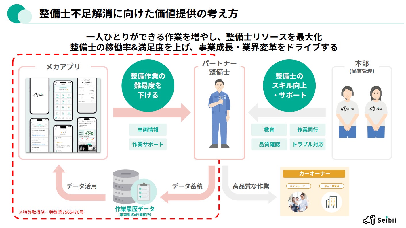 車の出張車検・整備を全国で展開する株式会社Seibii(以下セイビー・URL: https://seibii.co.jp/corporate 本社:東京都港区/代表取締役社長:千村 真希)は、出張整備作業をより“確実に"かつ"効率的に”実施するためのスマホアプリの開発において特許を取得いたしました。今回の特許はセイビーで2件目の取得となります。