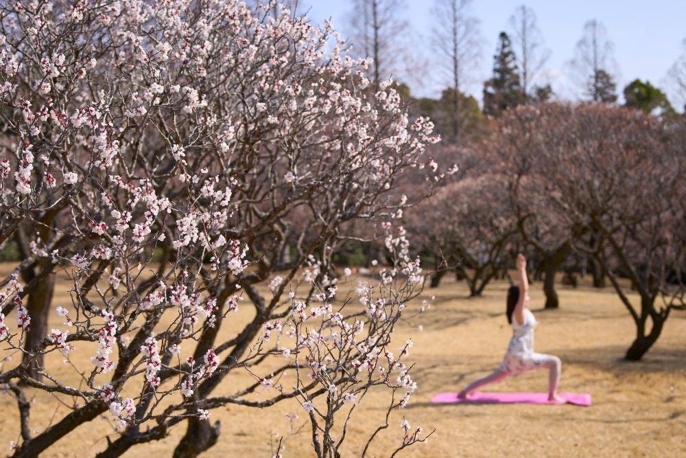 梅が咲き誇る空間でヨガ体験ができるウェルネスイベント「梅のピクニックBOXランチ付きヨガ」を2月25日に開催