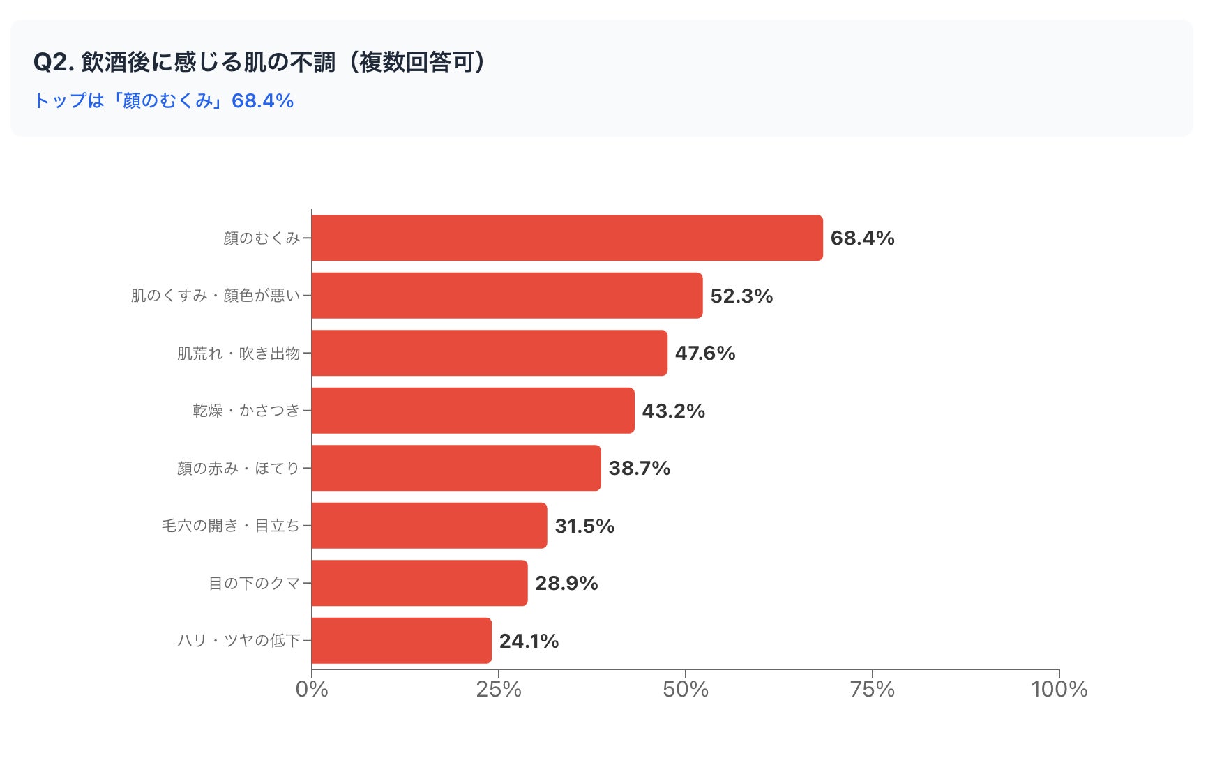 飲酒翌日の肌悩みトップは「むくみ」68%、「くすみ」52% ―年末年始の肌ケア意識と美容医療への関心も明らかに―
