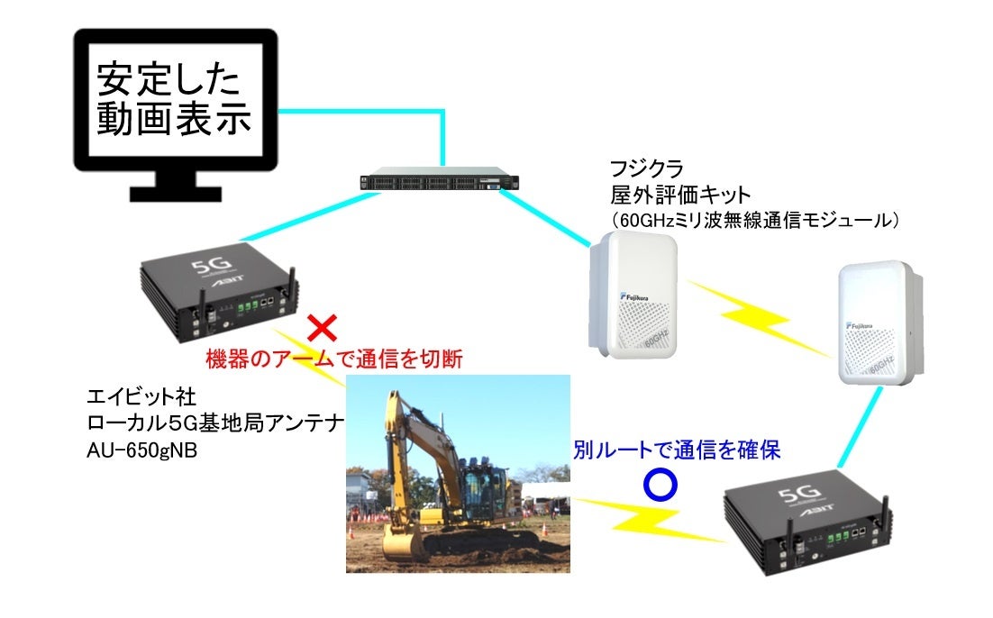・建設作業機器のデモンストレーションで、バックホールとしての有効性を実証。