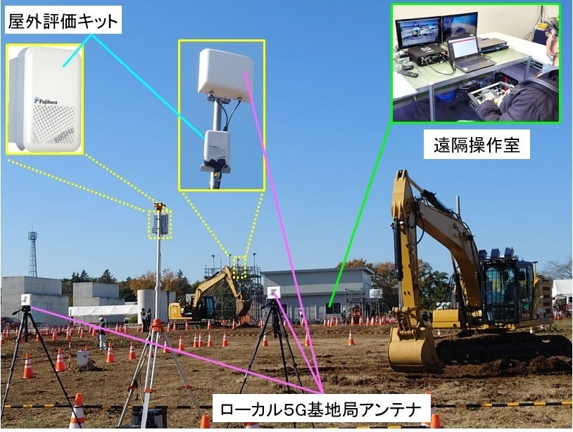 デモンストレーションでは、ローカル5G基地局と屋外評価キットによって、高信頼かつ低遅延の‘切れない無線環境’が構築され、これらを介した映像伝送により、遠隔地からの建設機器の操作がスムーズに行われました。