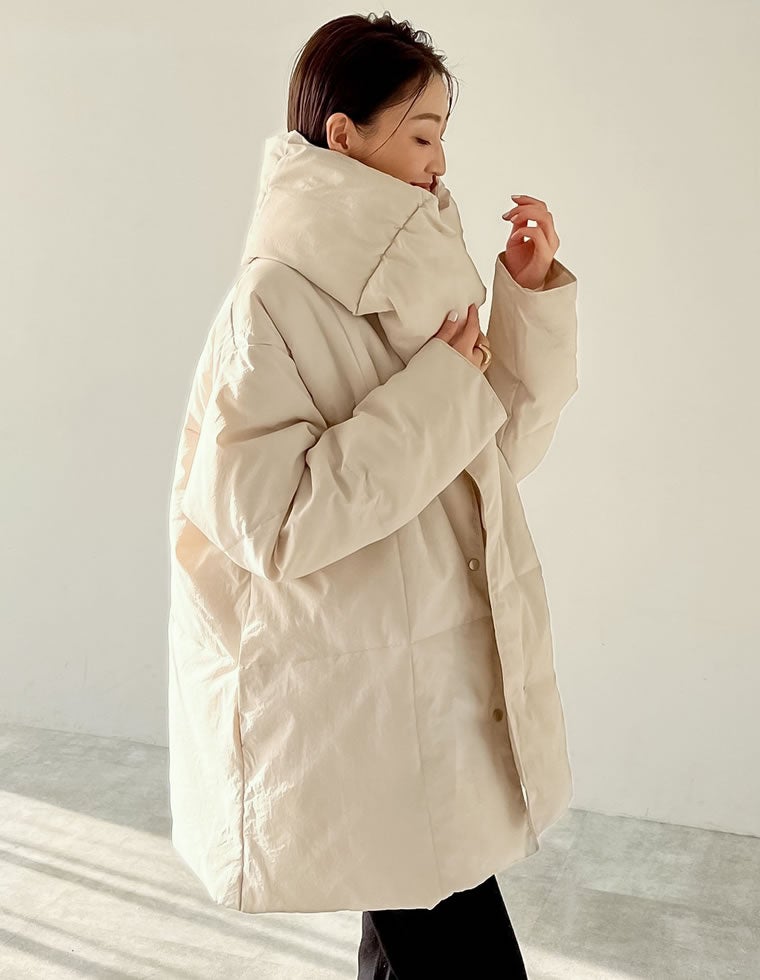 [2点セット]マフラー付きヴィンテージライクタフタノーカラー中綿ダウンジャケット