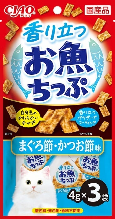 いなばペットフード株式会社(いなば食品グループ 本社:静岡県静岡市/取締役社長 稲葉敦央)は、猫ちゃん用おやつ「CIAO香り立つお魚ちっぷ」3種を新発売しましたので、商品についてご案内します。