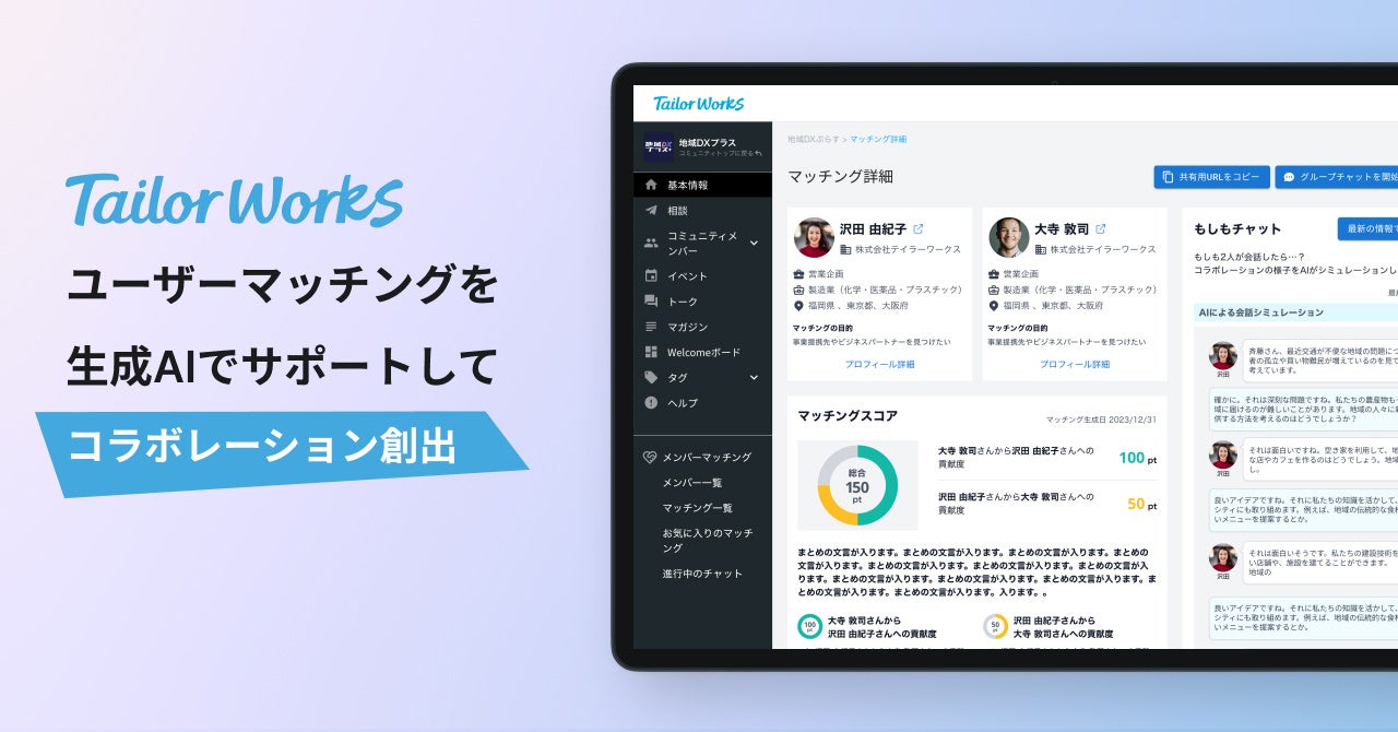 Tailor Works、ユーザーマッチングを生成AIでサポートしコラボレーションを加速する新機能を公開