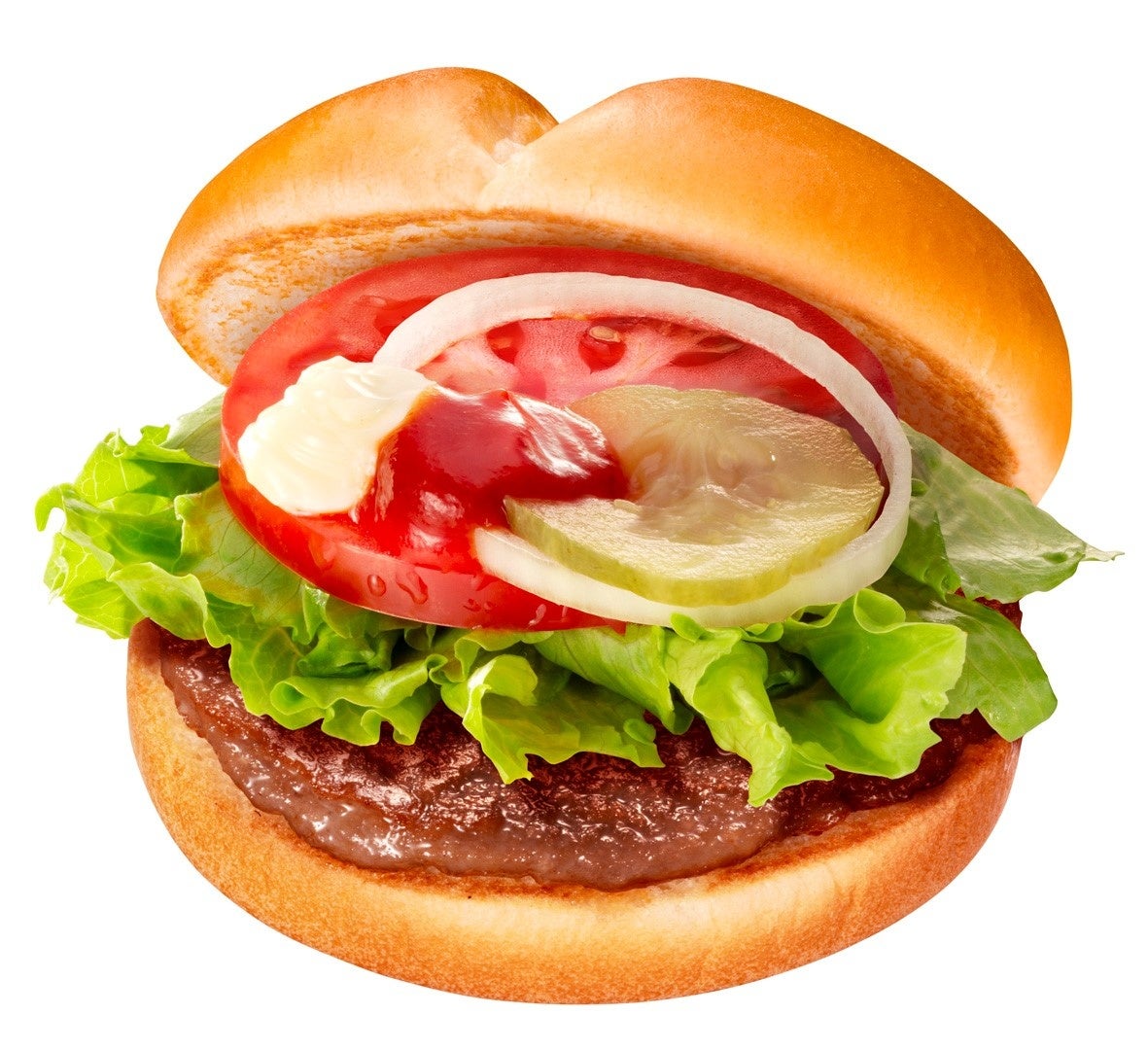 トマト、レタス、玉ねぎのフレッシュな野菜と北海道利尻産昆布だしの“旨味”を取り込んだオリジナルパティを組み合わせた、肉と野菜をバランスよく楽しめる1品です。