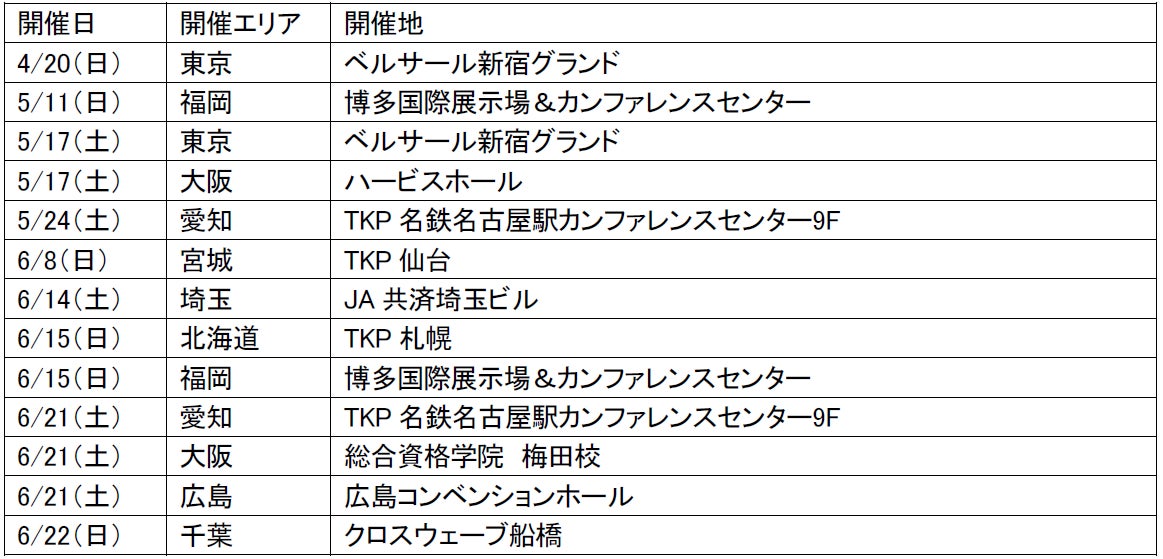 開催スケジュールは下表の通りです(2024年12月16日現在)。