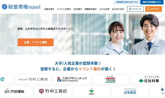 前出の総合情報サイト。就活に役立つ会社情報や採用情報のほか、全学年を対象としたアルバイト・インターン情報、全国各地で行われる設計展情報など、建築・土木系学生に必要な情報を幅広く掲載しています。