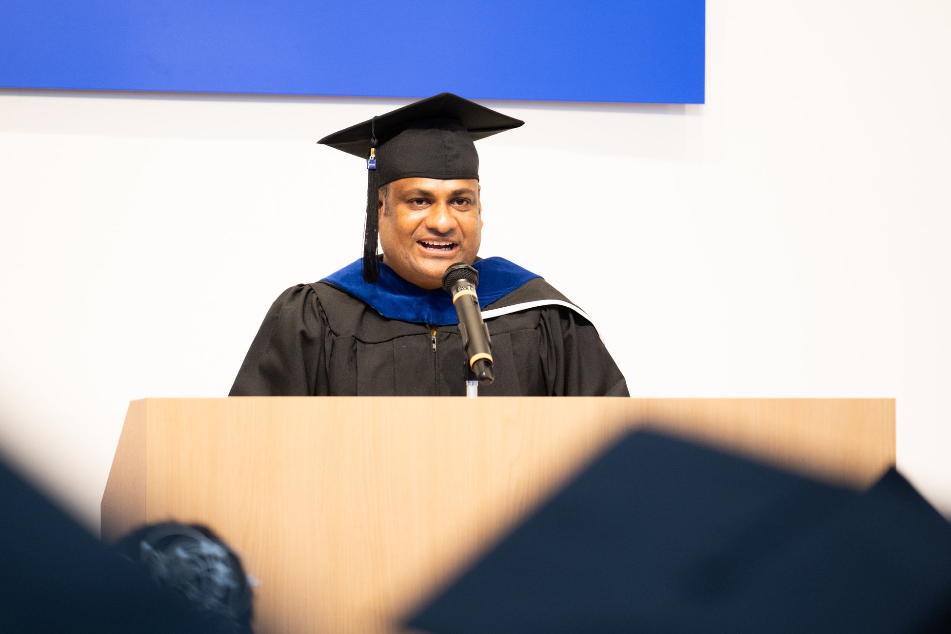 Academic Excellence Award受賞者 Manohar Singala氏(インド出身)は、グロービスの学生たちとの熱い経験を共有し、ビジネスリーダーは世界を変える力があるという信念を表明しました。