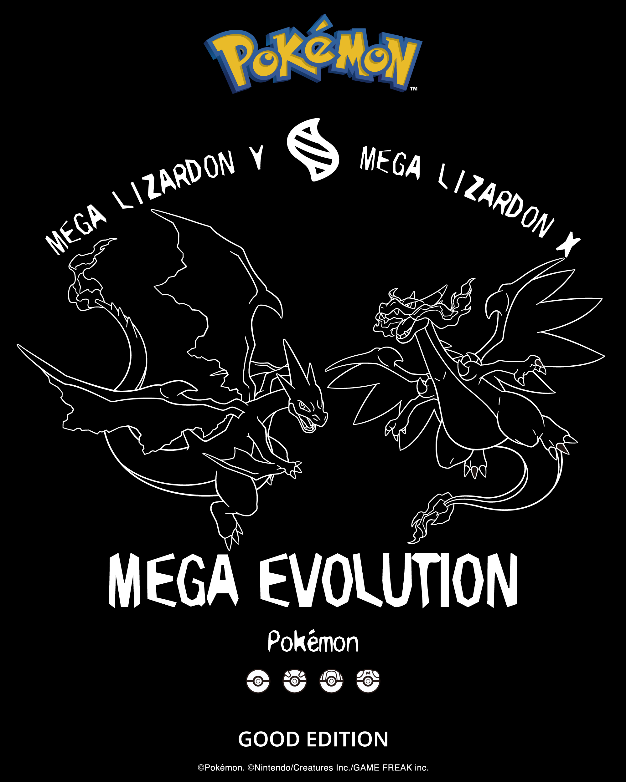 (※GOOD EDITIONのパックTシャツご購入の方には、メガシンカポケモンのステッカーが付属します。)