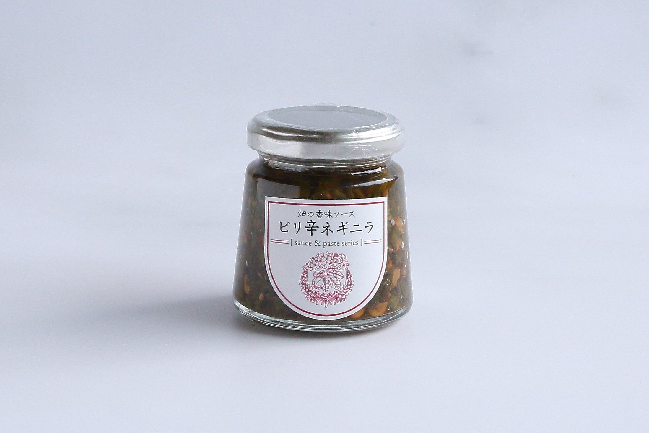 暑さで食欲が落ちるこれからの季節にぴったり。「ねぎニラ」にごま油や醤油、タマネギや生姜などを合わせて作られた『ピリ辛ネギニラ』はピリリと感じる辛さと、旨味たっぷり食欲のそそる味わいです。蒸し鶏等の肉・魚料理などにかけるだけで贅沢な一品になります!
