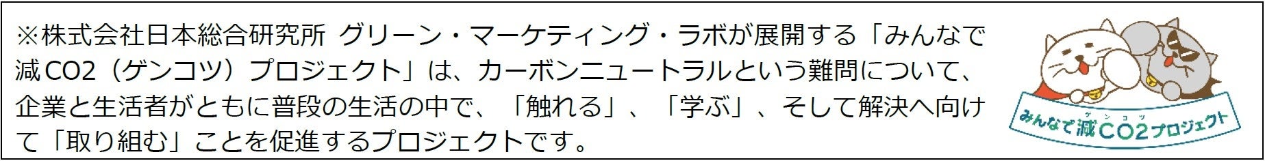 「グリーン・マーケティング・ラボ」は、脱炭素社会の実現に向けて生活者の行動変容を促すことを目的に、「みんなのくらしから、グリーンなミライへ」というスローガンの下で活動しています。買い物や教育の場面でワクワクやトキメキの要素で楽しみながら脱炭素に「触れて」「学び」「取り組む」コンテンツを提供する「みんなで減CO2(ゲンコツ)プロジェクト」を推進し、脱炭素社会の構築に向けて歩む企業と生活者を応援しています。