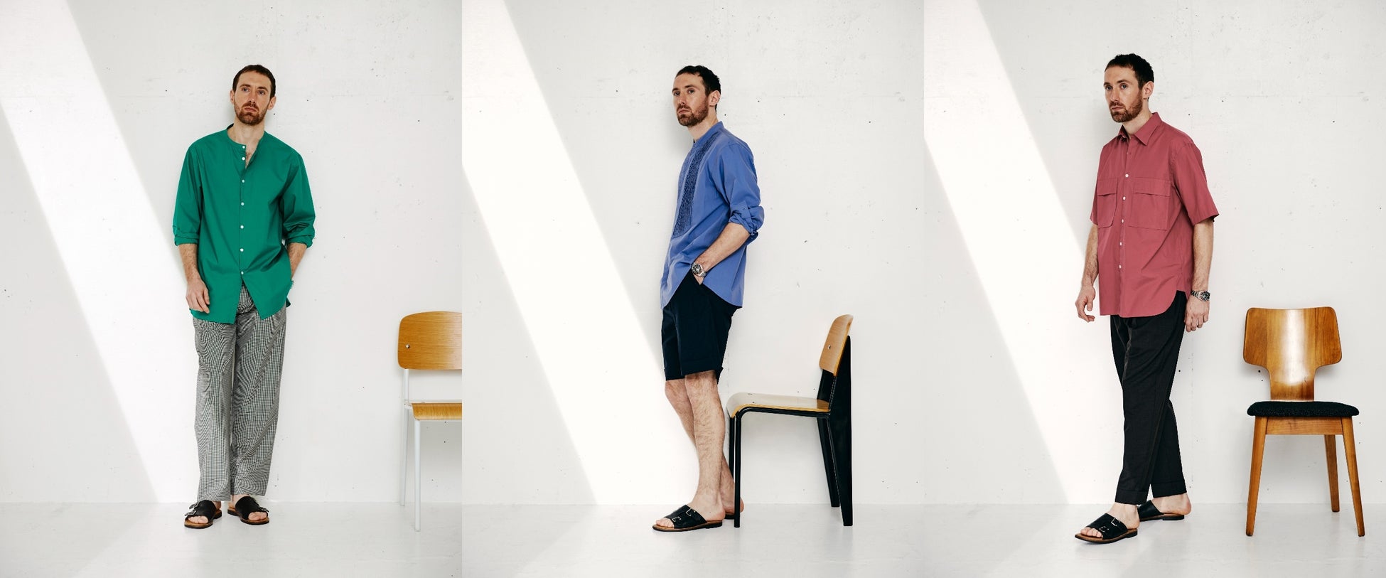 2023年春夏コレクションのテーマは「進化するバリエーション」。今シーズンもドレス工場での生産にこだわりながら、これまでよりも「カラー、素材、形」のバリエーションを広げていきます。今季ルックブックに登場するのは10LOOK。:colonが「シャツとパンツのブランド」であることをクリアに感じていただけるルックの数々は、ブランドのぶれない姿勢を感じていただける仕上がりです。