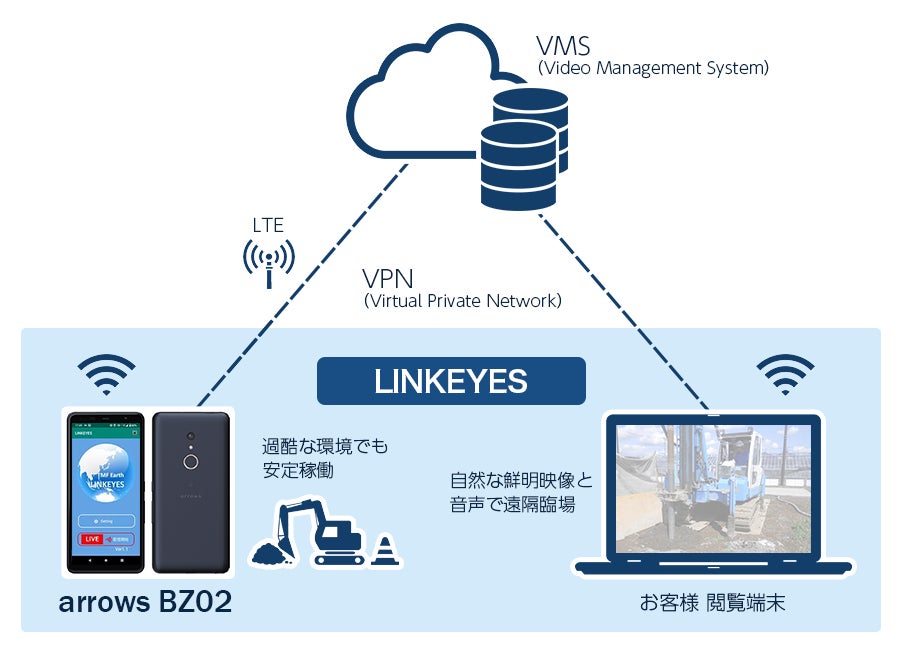 - 「arrows BZ02」と「LINKEYES」で現場の様子を定点観測している様子