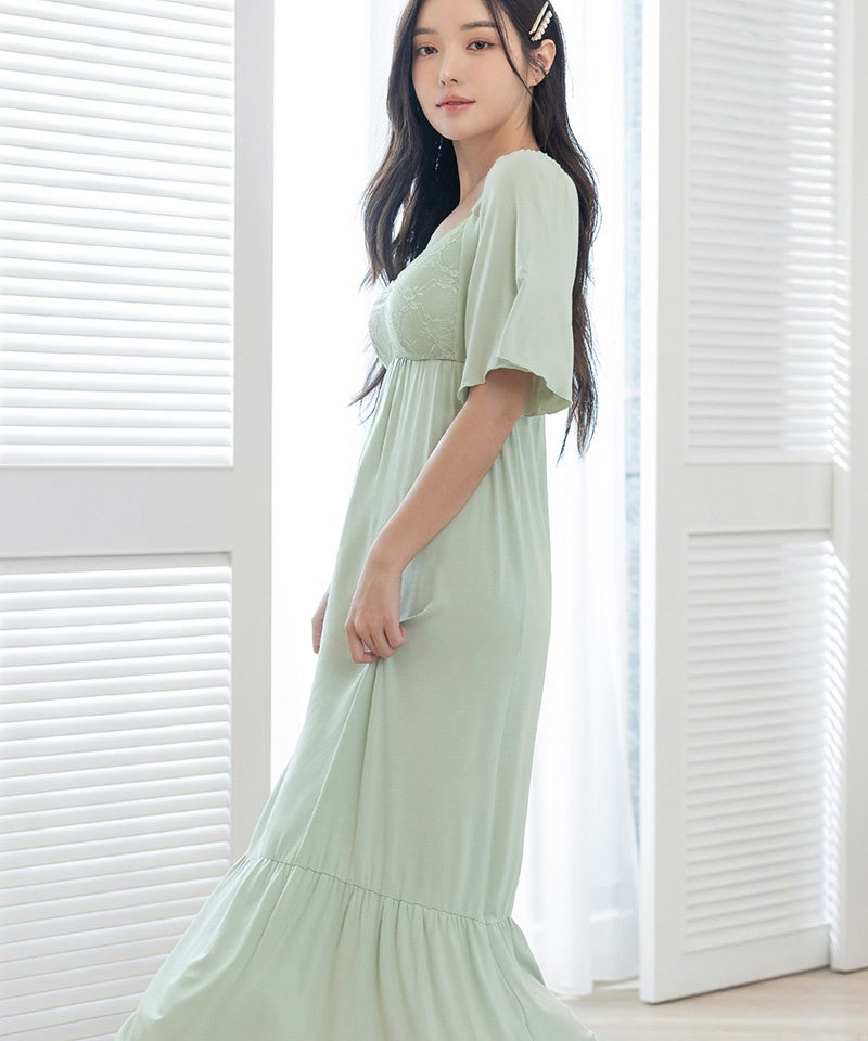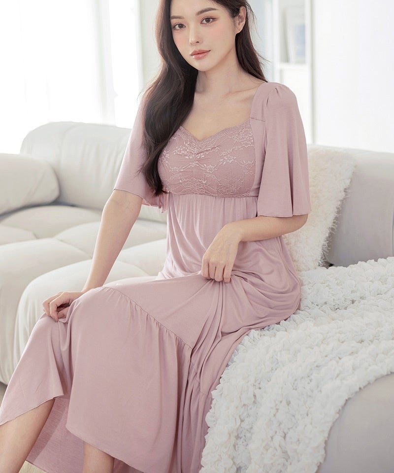 多くの美容好きさんや産前産後のママさんが愛用しているナイトブラ一体型ルームウェアから、夏が涼しく快適に過ごせる半袖タイプが登場!フレアな袖は、「キャミソールタイプだと二の腕が気になる...」「二の腕を隠して、痩せ見えしたい」というお客様の声を参考に、スタイルが良く見えるちょうど良い丈感に仕上げました。また、アクセントとなるワンピースの下側の切り替えし部分は、より女性らしいシルエットに仕上がるよう工夫されています。