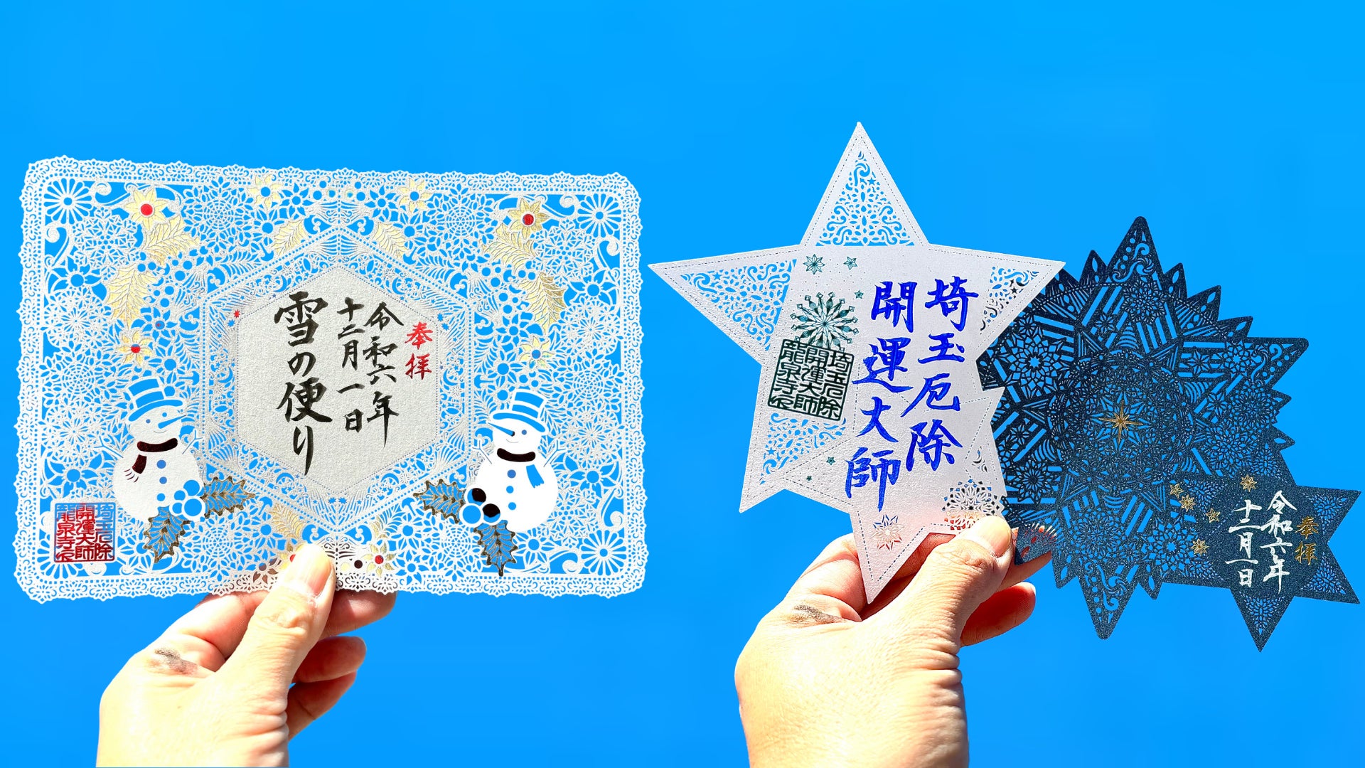 切り絵御朱印発祥の寺「埼玉厄除け開運大師・龍泉寺」にて2種類の冬限定重ね切り絵御朱印『雪の便り』『冬星の輝き』の授与開始