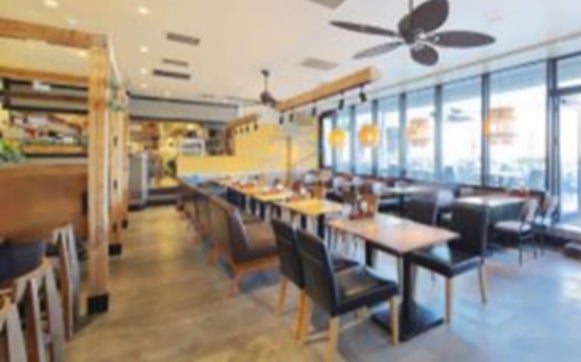 ショッピングモール施設内にありながらも開放的なテラスのあるリゾートフルな空間です。