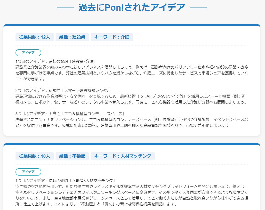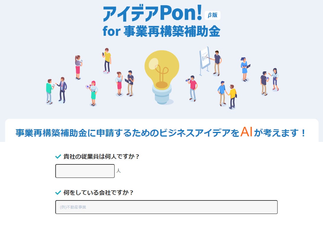 事業再構築補助金の採択事例に基づき、ChatGPT4がビジネスアイデアを提供『アイデアPon!(β版) for 事業再構築補助金』リリース