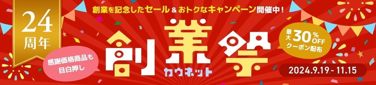 創業24周年の節目を迎えるにあたり、お客様への感謝の気持ちを込めて、カウネットWebサイトにおいて特別企画をご用意いたしました。日頃ご利用いただいているお客様はもちろん、初めてカウネットをご利用いただく方にも楽しみながらお得にご参加いただける内容となっております。