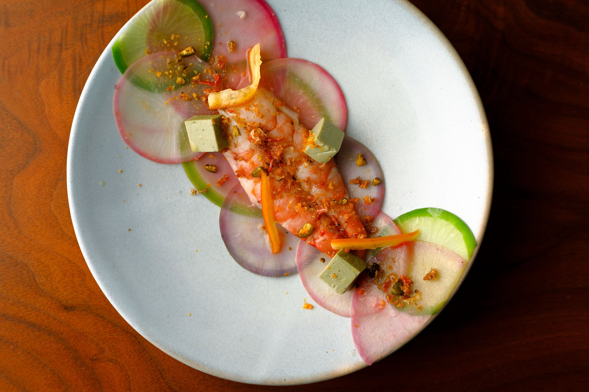 ■足赤海老 カラフル大根 ピスタチオ豆腐