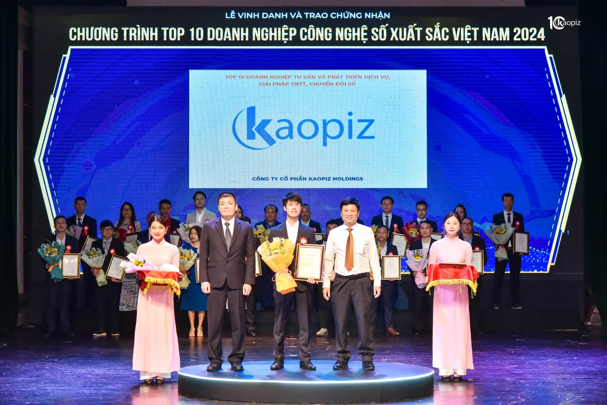 2024年9月21日、株式会社カオピーズの関連会社であるカオピーズ・ソフトウェア(所在地:ベトナム・ハノイ) は、「優良デジタル技術企業ベトナムトップ10」のうち、コンサルティングサービス開発分野、ならびに、デジタルトランスフォーメーション (DX)・A-IoT分野の部門でダブル受賞を果たしました。