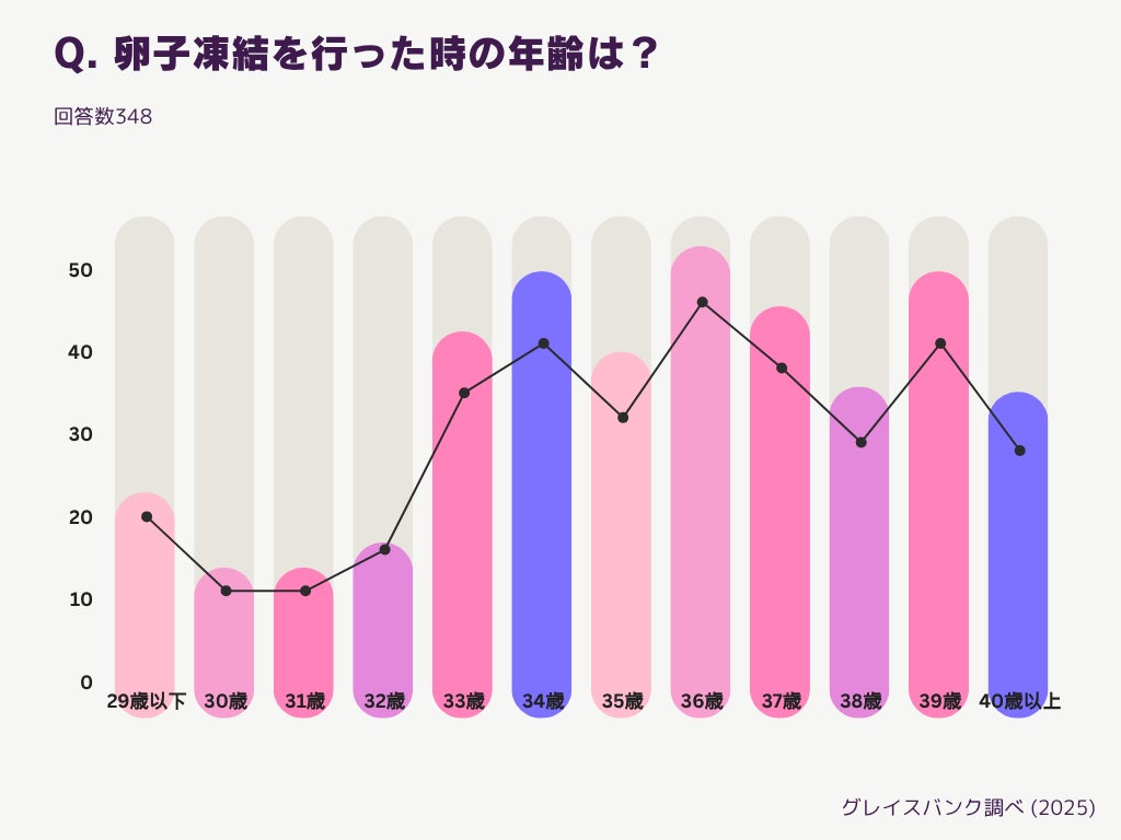 卵子凍結を行うピークは36歳。33歳〜39歳がメインゾーン
