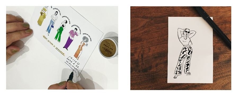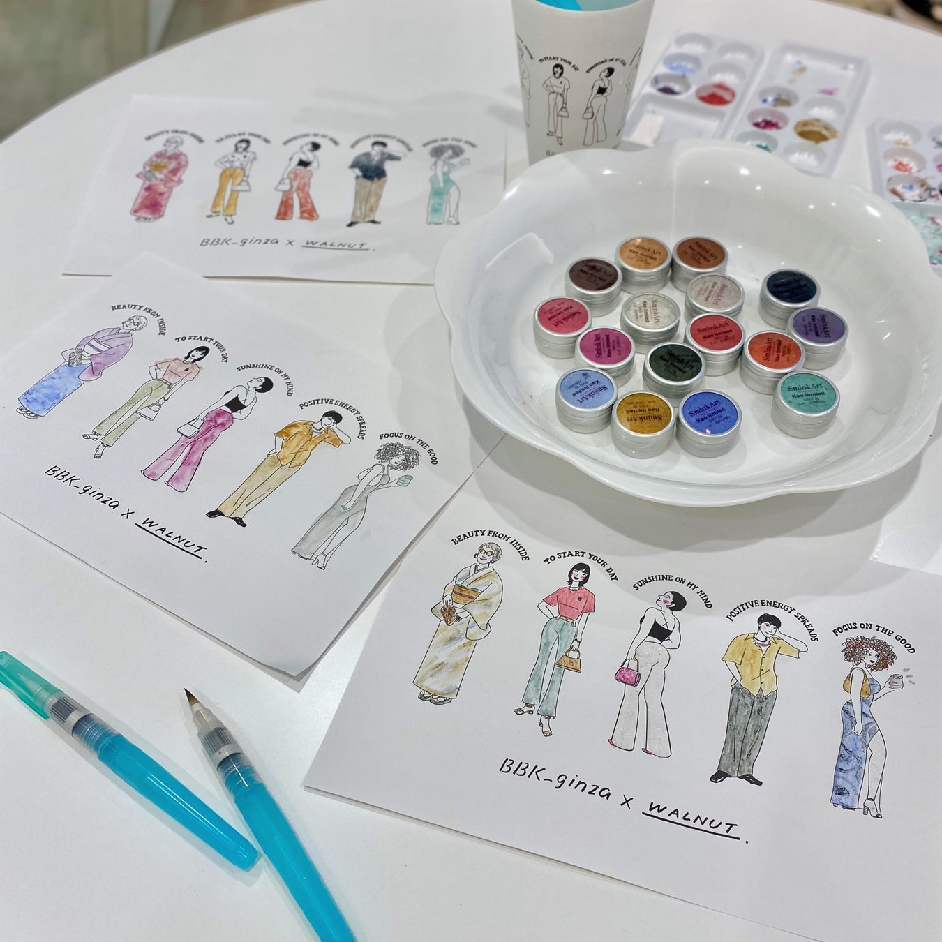 WALNUTさんのイラストがBEAUTY BASE by Kao銀座店をジャック!ウィンドウ、店内装飾等をお楽しみいただけます。また、化粧品をアップサイクルした絵具を使用して、WALNUTさんのイラストに色付けできる塗り絵を体験いただけます。