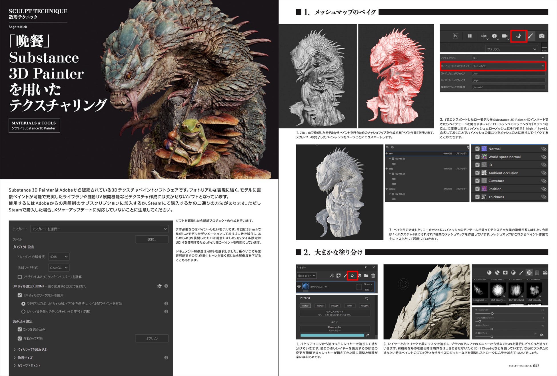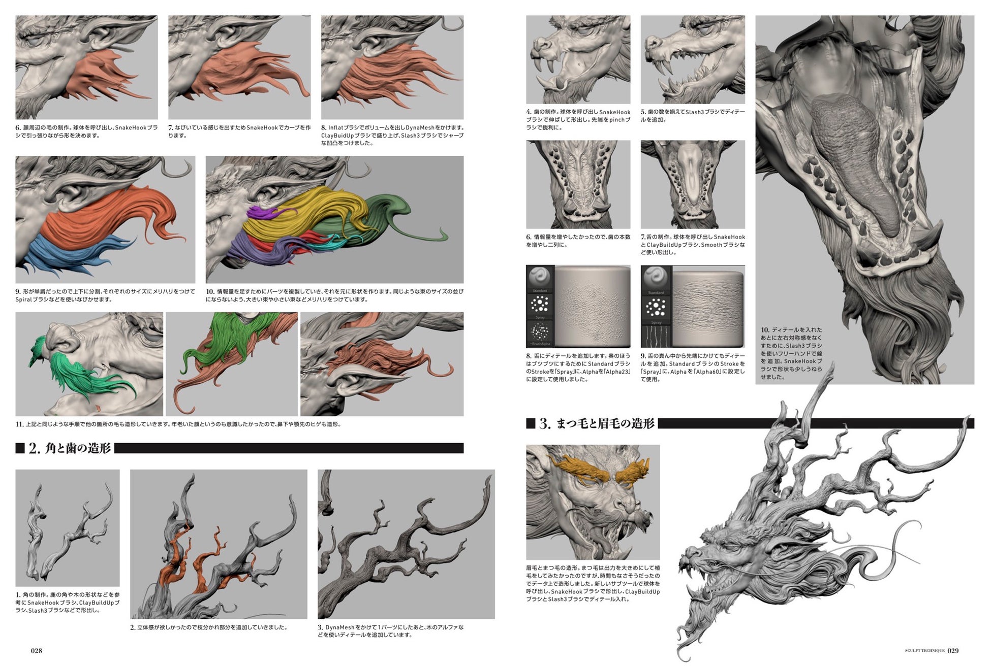 作り下ろし作品や今まで制作したドラゴンを集結した撮り下ろしギャラリーほか、眼球、ウロコ、口の中、手足、翼など、メインのドラゴンの3Dスカルプトテクニックを掲載します。