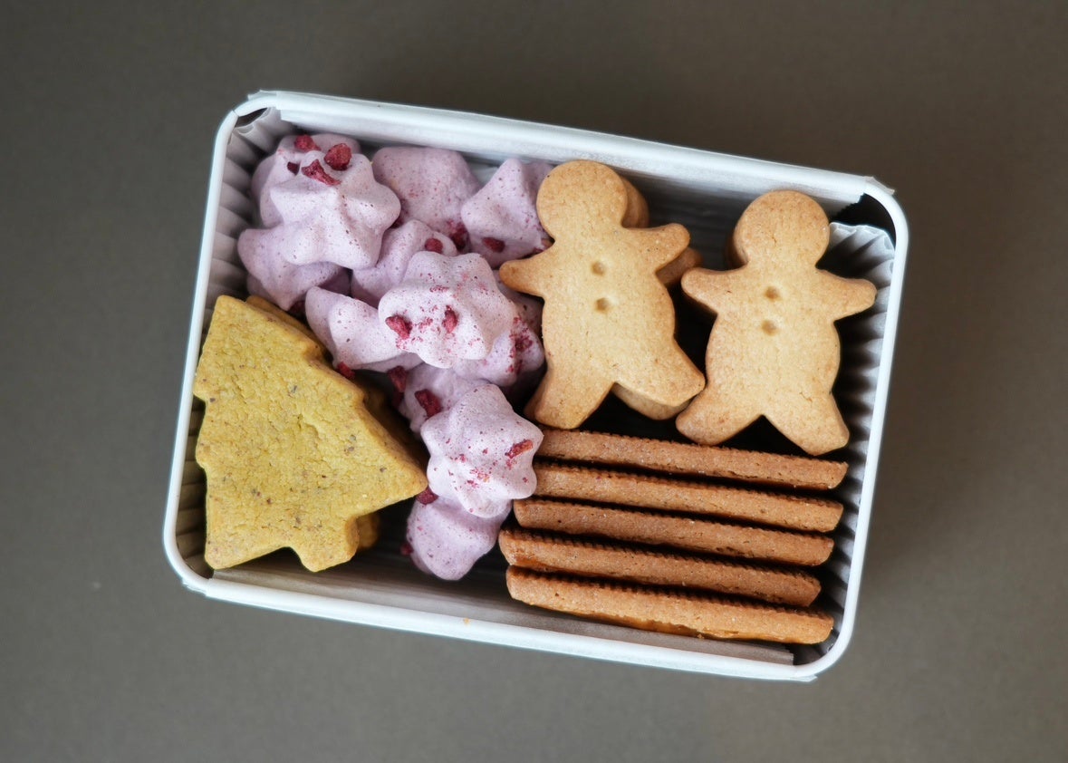 GH COOKIES.からは、店舗でも人気のクッキー3種とメレンゲを詰め合わせたクリスマスクッキー缶が登場します。芳醇なバターとバニラの風味広がるサクサク食感の薄焼きサブレ、ピスタチオをたっぷり使い、アクセントに塩を加えて仕上げたピスタチオクッキー、発酵バターとカルダモン香るカルダモンクッキー、シュワっと溶けて甘酸っぱいラズベリーメレンゲをお楽しみください。クリスマス限定パッケージにてGH COOKIES.店頭限定のみ販売します。
