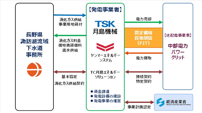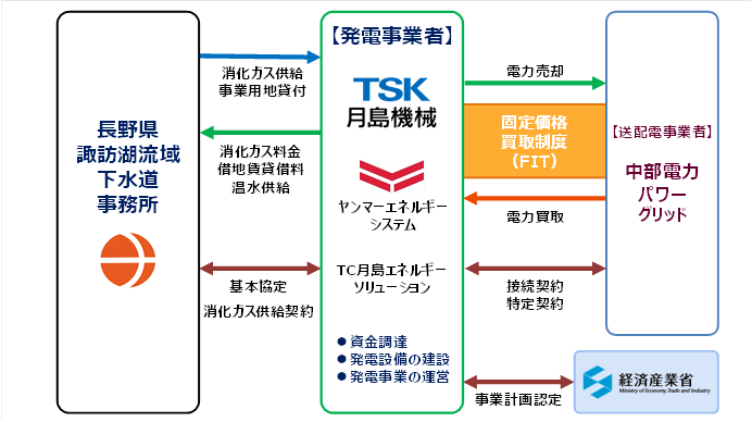 東京センチュリー株式会社(以下「東京センチュリー」) と月島機械株式会社(以下「月島機械」)の共同出資により設立した連結子会社の「TC月島エネルギーソリューション合同会社」(以下「TC月島エネルギーソリューション」)、月島機械、ヤンマーエネルギーシステム株式会社(以下「ヤンマーエネルギーシステム」)の3社で構成する企業グループ(以下「企業グループ」)が、「諏訪湖流域下水道豊田終末処理場消化ガス発電事業」(以下「本事業」)に係る発電事業を開始いたしました。今後とも、パートナー企業である月島機械との協業関係の更なる深化を目指し、消化ガス発電事業を中心とする共創ビジネスの拡大に注力するとともに、脱炭素社会の実現にも引き続き貢献してまいります。
