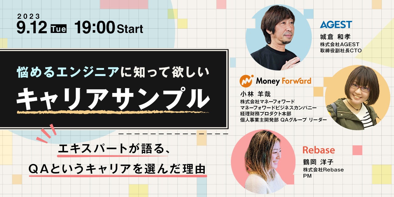 先端品質テクノロジーを活用してソフトウェアの品質・安全性向上を支援する株式会社AGEST(本社:東京都新宿区、代表取締役社長: 二宮 康真、以下「AGEST」)は、2023年9月12日(火)開催のエンジニアのキャリアパスに関する無料オンラインセミナー『悩めるエンジニアに知って欲しい「キャリアサンプル」~エキスパートが語る、QAというキャリアを選んだ理由~』に、当社取締役副社長CTOの城倉和孝が登壇することをお知らせいたします。