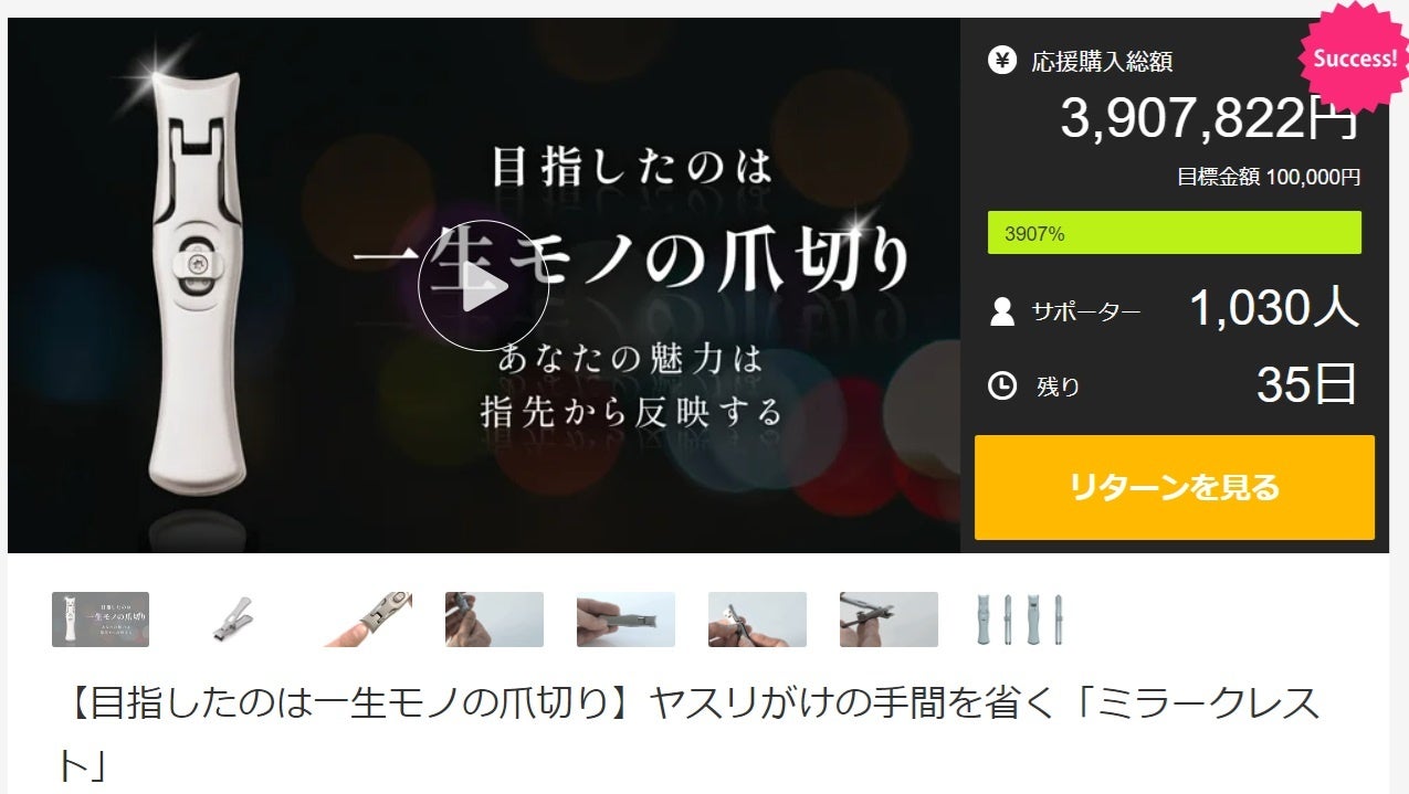 新たに追加されたリターンセットを通じて、さらに多くの方々にミラークレスト爪切りの素晴らしさを体験していただければ幸いです。詳細はプロジェクトページにてご確認いただき、ぜひこの機会にご支援をお願いいたします。
