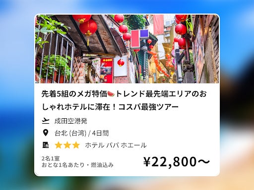 【台北】先着5組のメガ特価🍉トレンド最先端エリアのおしゃれホテルに滞在!コスパ最強ツアー