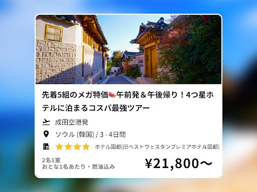 【ソウル】先着5組のメガ特価🍉午前発&午後帰り!4つ星ホテルに泊まるコスパ最強ツアー