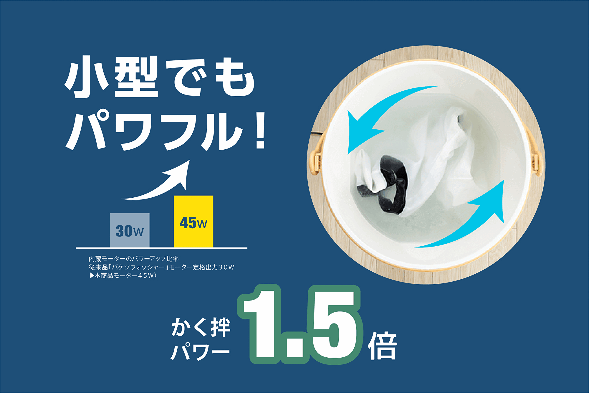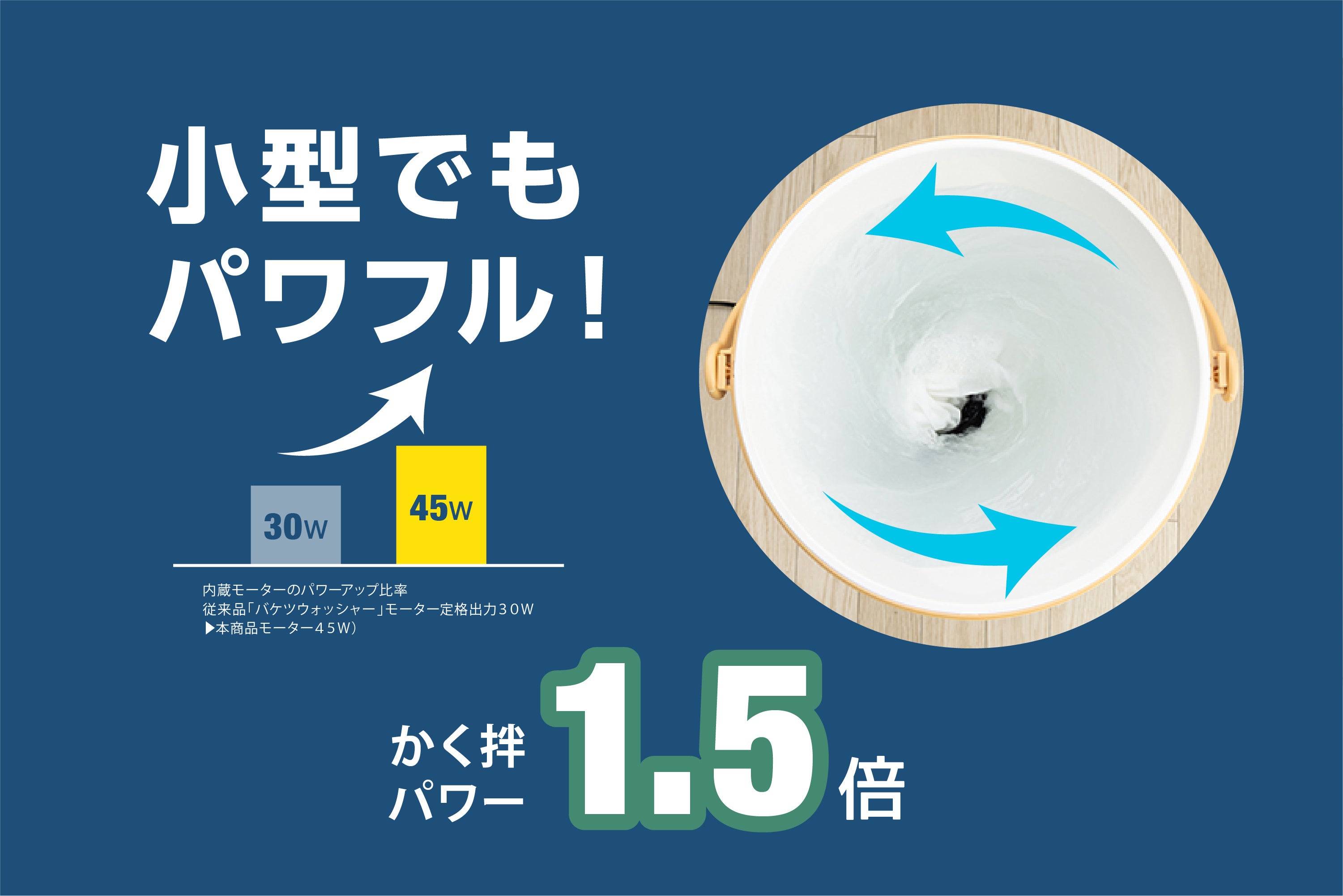 従来品と比べ、かく拌パワーが約1.5倍になり、頑固汚れにも絶大な効果を発揮します。