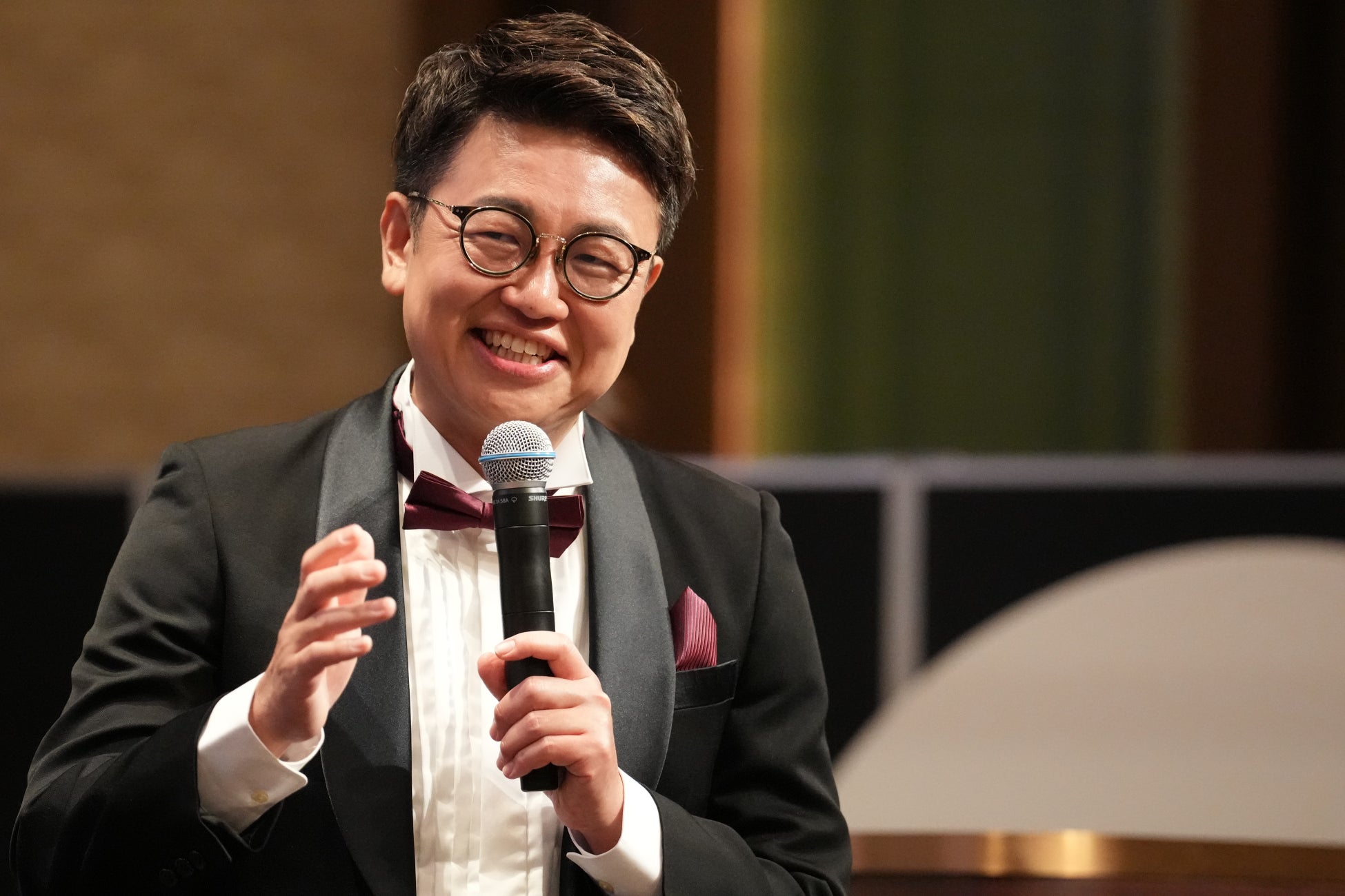 「DIAGEO WORLD CLASS 2025 JAPAN FINAL」初の大阪開催を記念し、関西出身のお笑いコンビ・銀シャリの橋本直さんと、元料理人としての経歴を持つ水田信二さんが特別ゲストとして登場。銀シャリの橋本さんは、トレードマークの青いスーツとは一変してラグジュアリーな装いで参加しました。