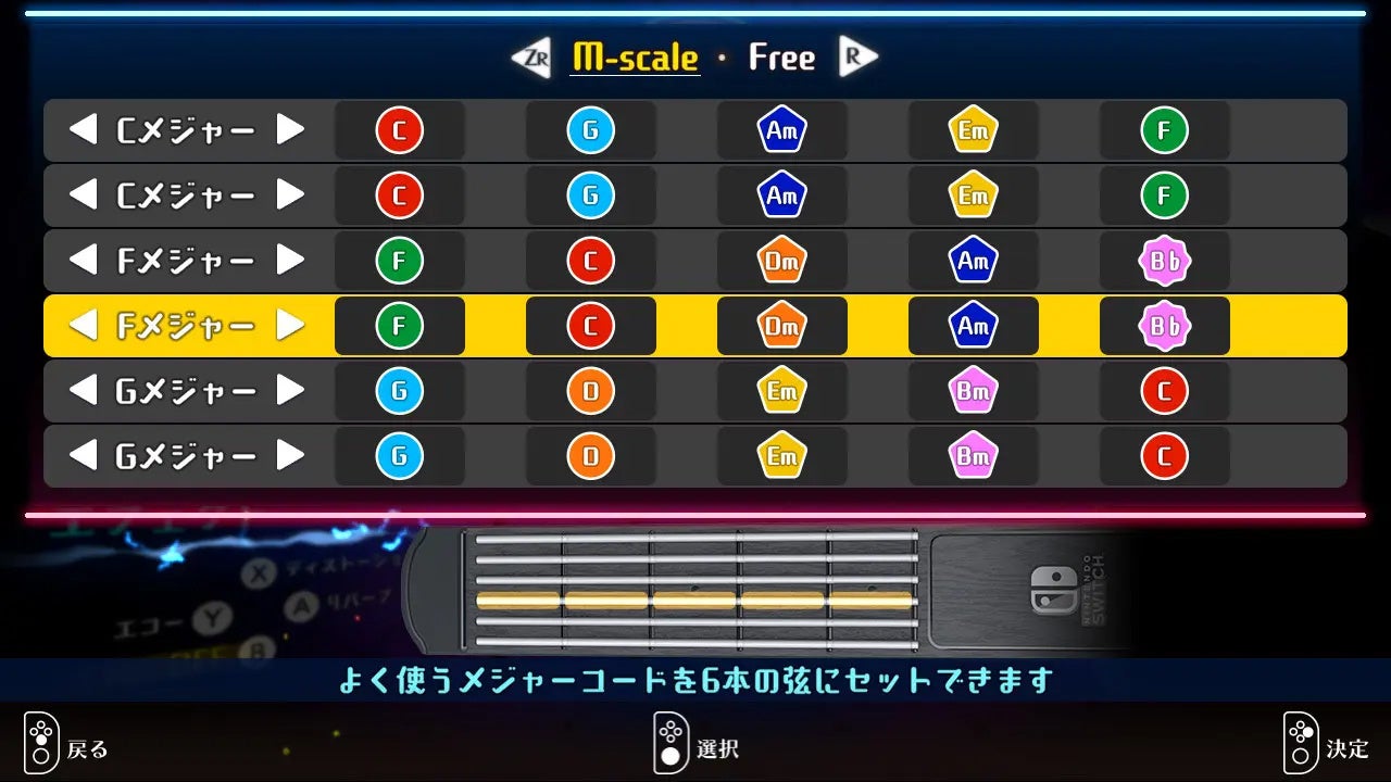 キャラクターによってプレイ中のギターの音色が変わり、お気に入りのキャラクターを選択してゲームをお楽しみ頂けます。