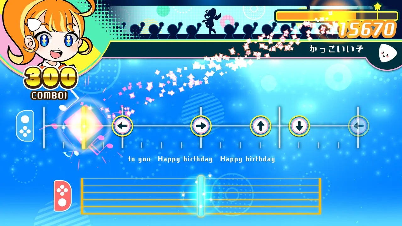 楽しくゲームをしながらリズム感を磨こう!Joy-Con™(R)を振ってリズムストロークを刻みながらJoy-Con™(L)で次々出現するコードマーカーをシュートするリズムゲームです。