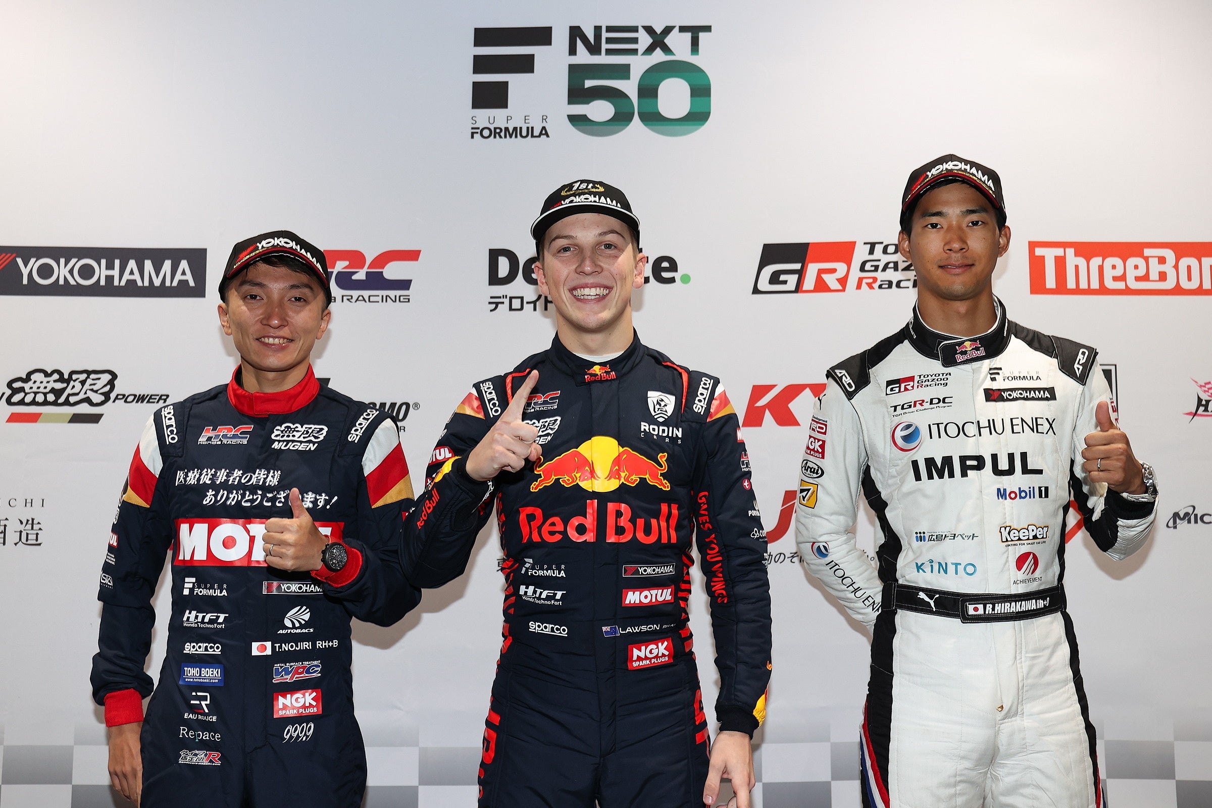 (野尻智紀選手、宮田莉朋選手、リアム・ローソン選手が登壇した開幕戦の予選後会見での一幕)