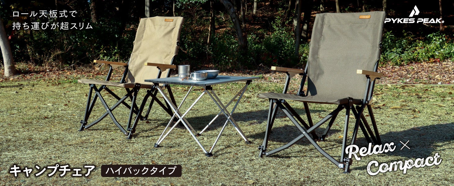 【先着100名様限定超早割り25%オフキャンペーン実施中】【極上のリラックスハイバックチェア】PYKES PEAKが【新商品】「アウトドア ハイバックタイプチェア」を予約販売中!