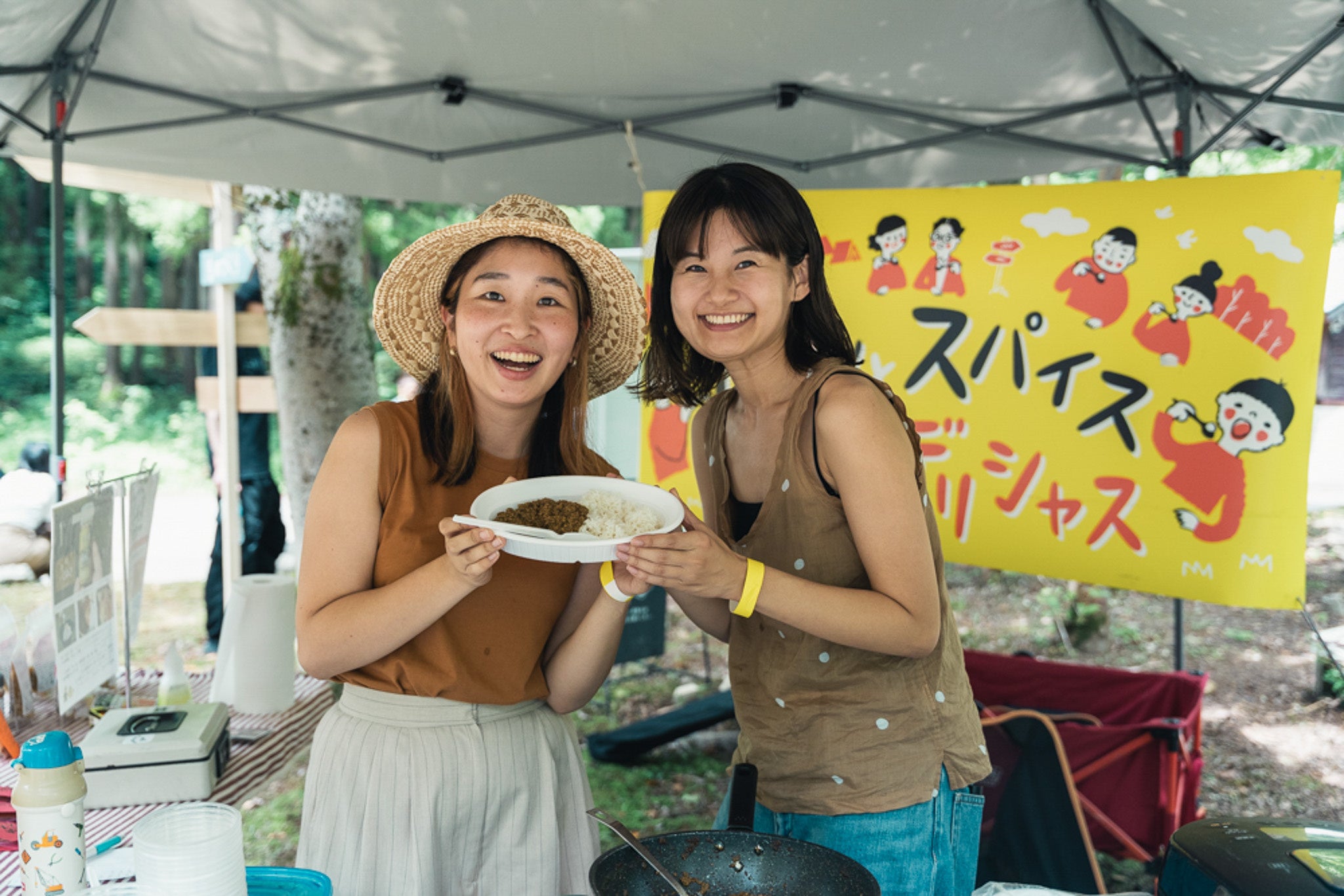 マルシェエリアに出店する「村の鍛冶屋」や「藤田金属」といった、アウトドアシーンで人気を誇るブランドの調理道具を実際に使用したり、地元農家の団体「ディノファーマーズ」が販売する勝山の新鮮な食材をその場で味わったりと、本イベントならではの食体験を提案します。