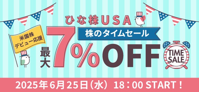 「ひな株USA」の予約注文サービスの開始を記念し、お客さまの米国株デビューを応援する「株のタイムセール」を2025年6月25日(水)に行います。