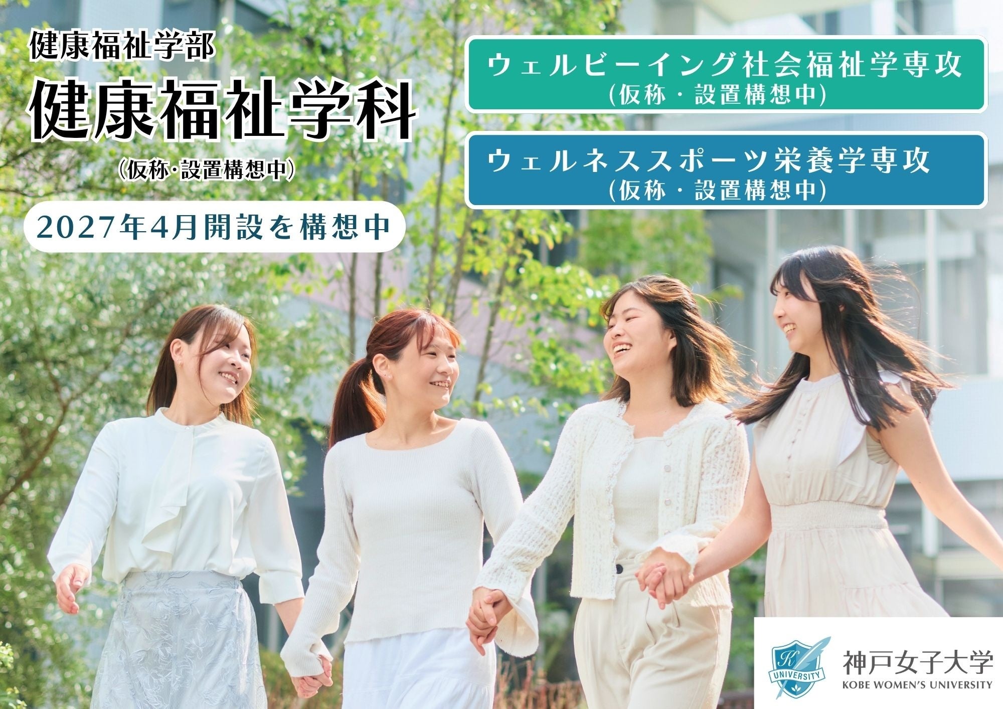 神戸女子大学(神戸市中央区、学長:洪愛子)は、2027年4月に「健康福祉学部 健康福祉学科(仮称)」の開設を予定しており(現在構想中)、準備を進めてまいります。