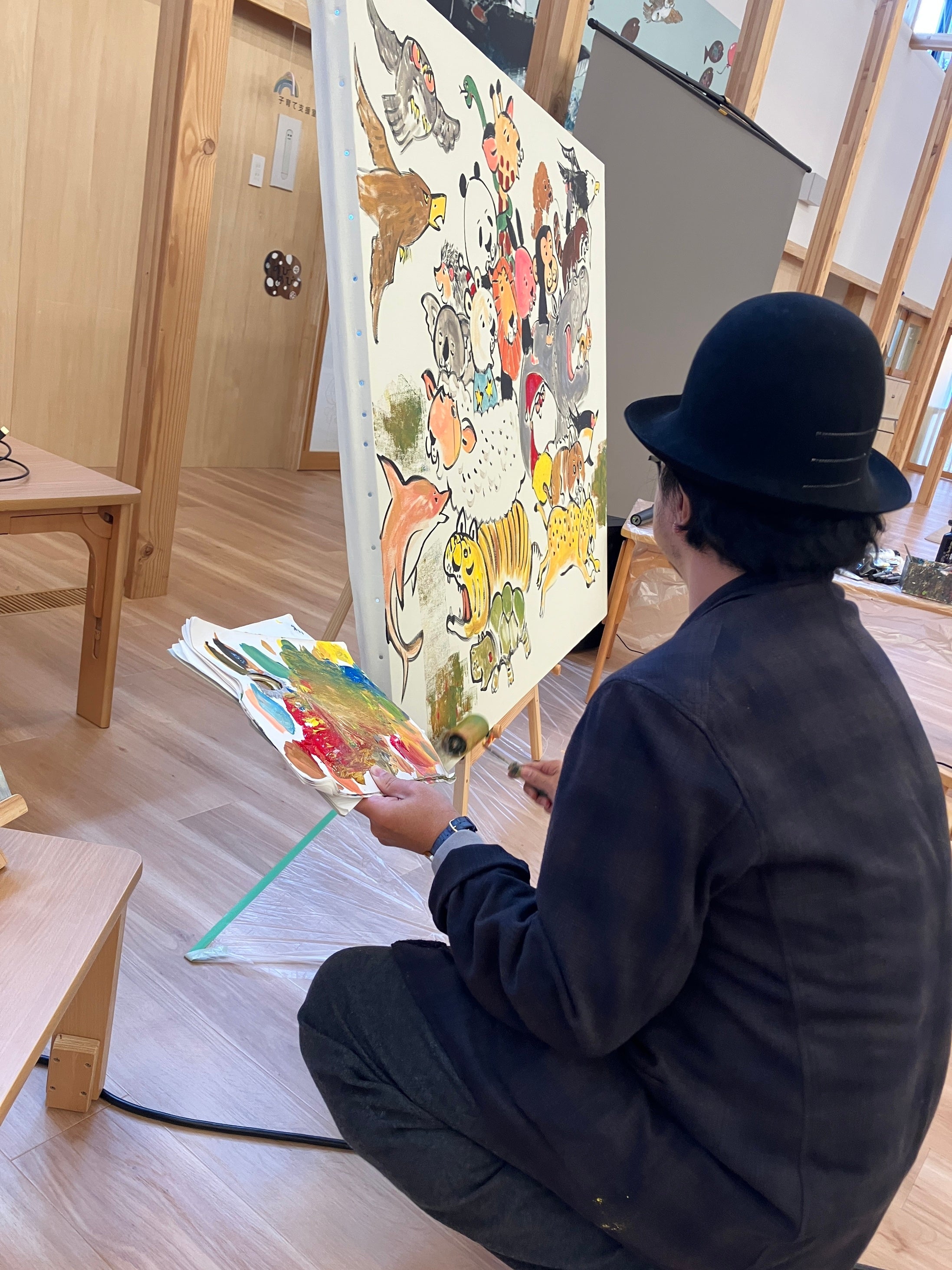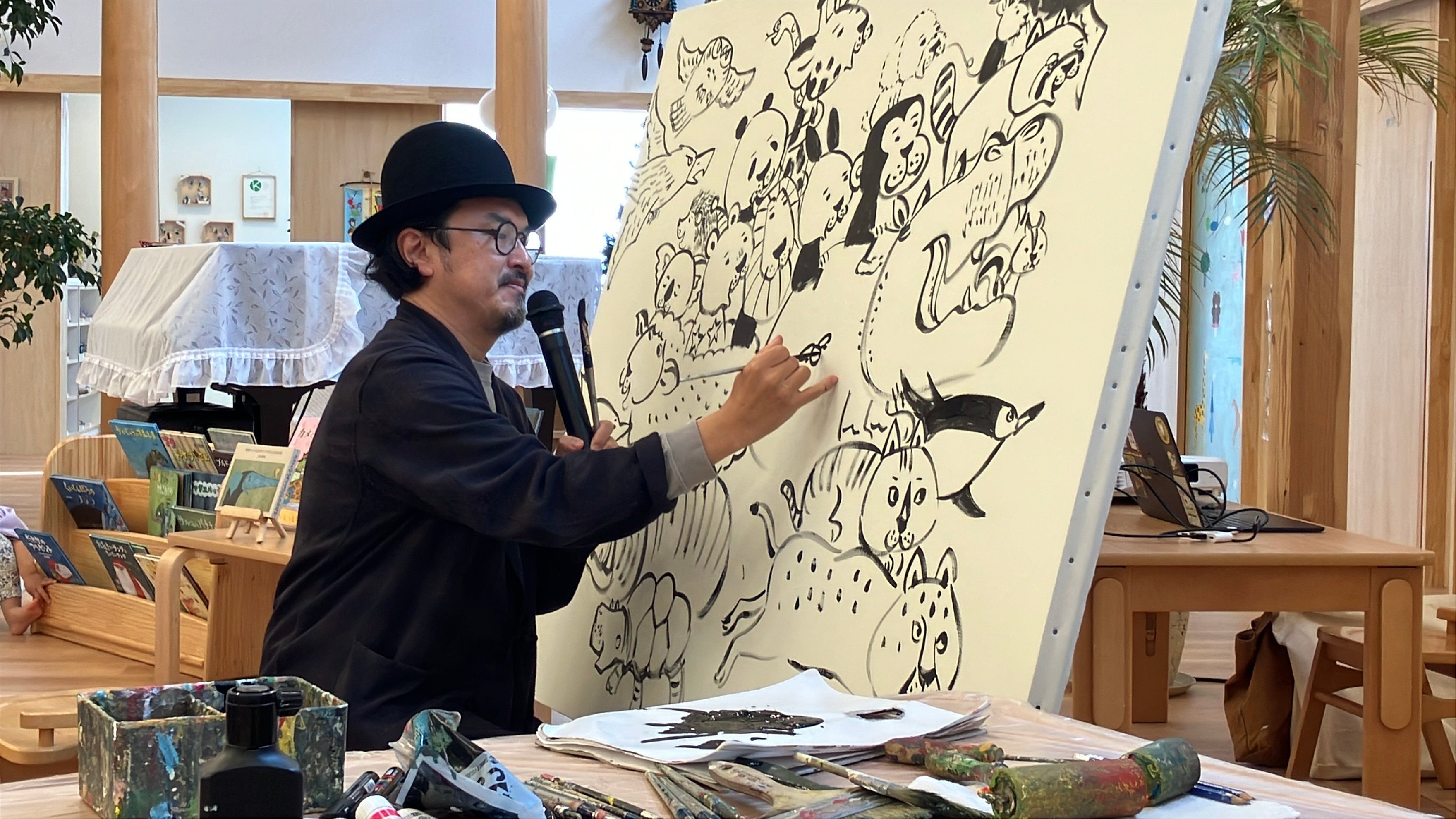 子どもたち大興奮!絵本作家・谷口 智則さんによるライブペインティングをレイモンド斑鳩こども園で開催