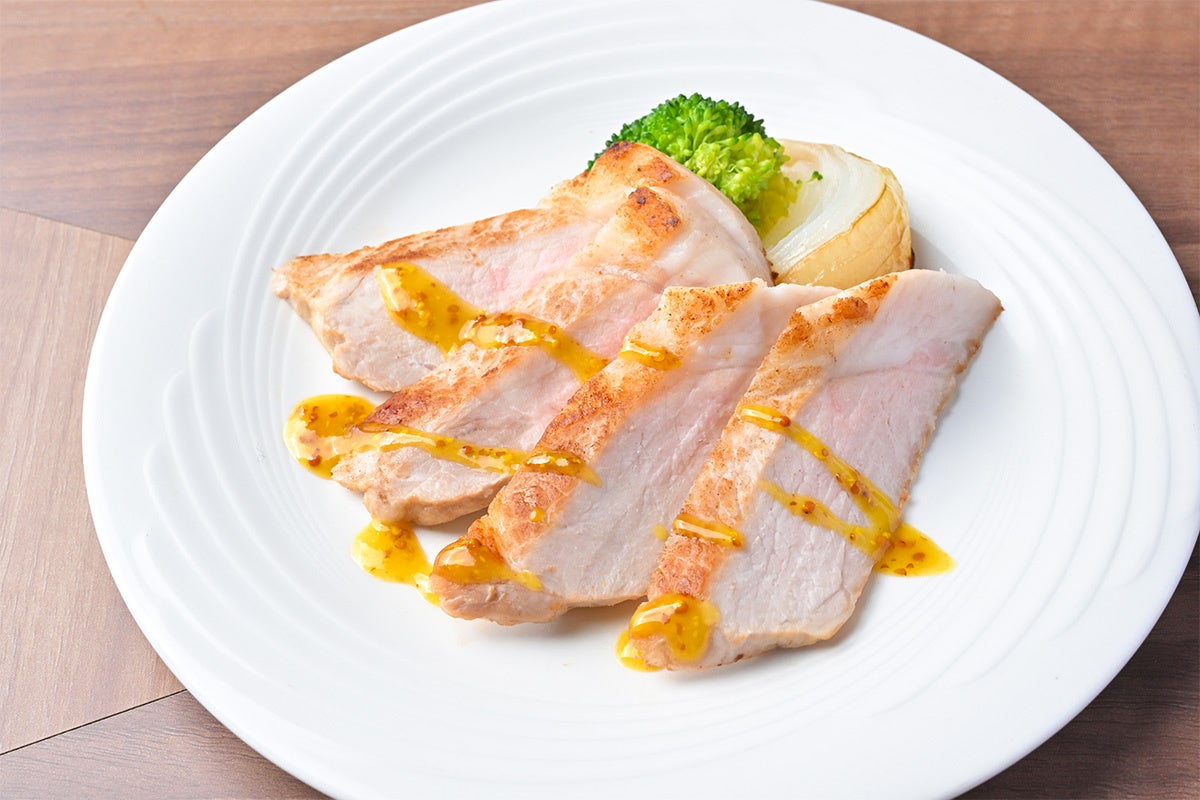 ランチタイムには柔らかな肉質が魅力の「神戸ポークステーキ」、ディナータイムには香ばしく焼き上げた「ビーフステーキ」をご提供いたします。焼きたてならではの贅沢な味わいをお楽しみください。付け合わせには、甘みが特長の「淡路島産の玉ねぎソテー」を添えてご提供いたします。