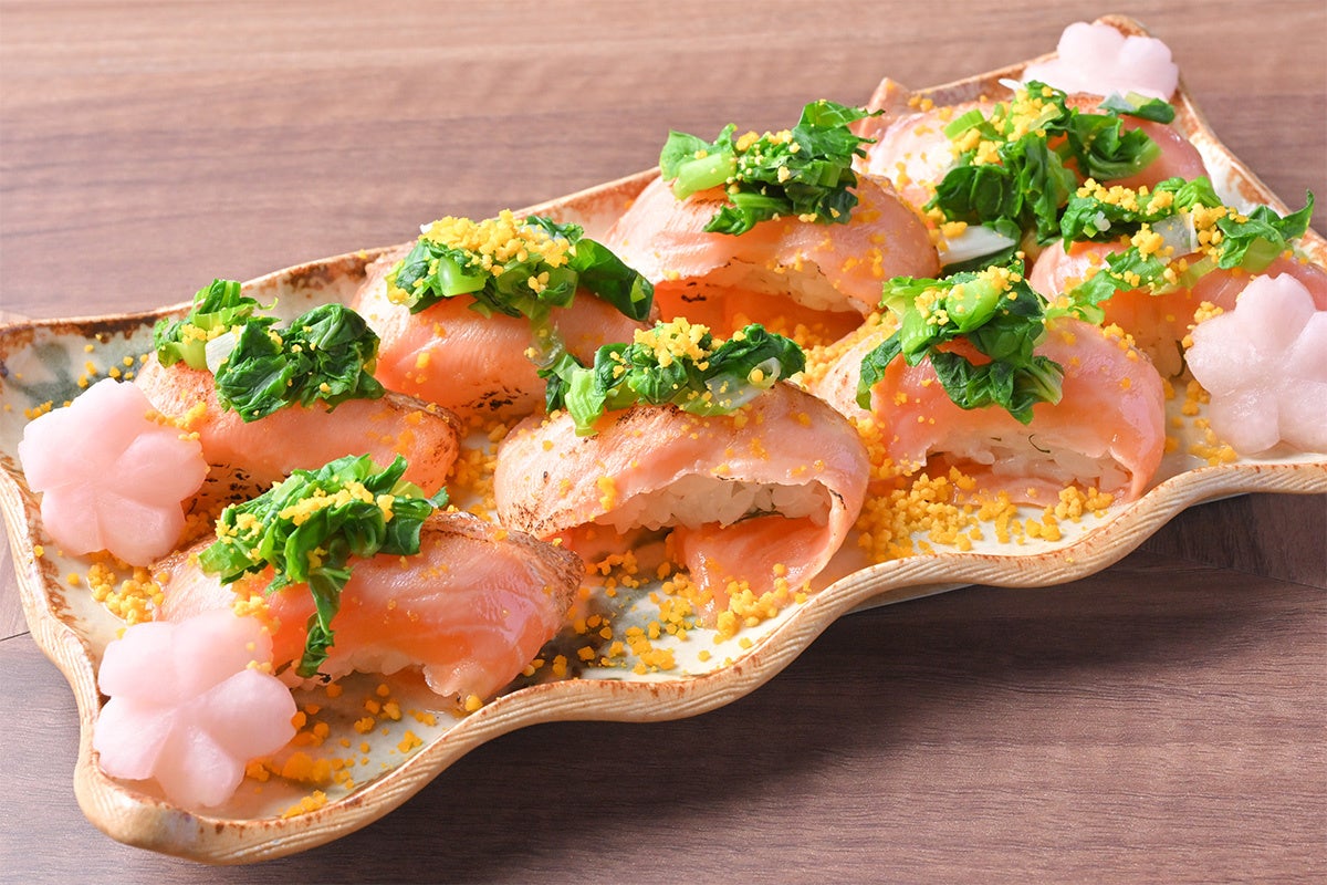 特に注目の食材は、須磨の海で育てられている養殖魚「神戸元気サーモン」です。これは、灘の伝統ある日本酒「福寿」の酒粕を餌に混ぜて大切に育てられた神戸ならではのブランド食材で、コラーゲンが豊富に含まれており、さっぱりとした味わいが特長です。本フェアではその魅力を引き出す「あぶり寿司」としてご提供いたします。さらに、春野菜と魚介たっぷりのパエリアや、瀬戸内産鯛のしゃぶしゃぶなど、地元の希少な食材をシェフの技で彩り豊かな一皿に仕上げました。この時期だけの贅沢なラインナップを通じて、心ゆくまで「春の恵み」をお楽しみください。