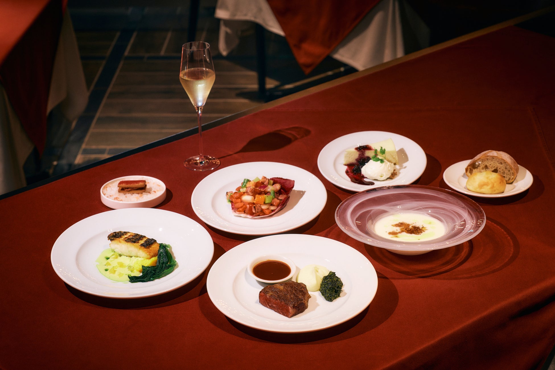 肉料理と魚料理のダブルメインで、Re : Wharfの真髄を味わい尽くすコース。