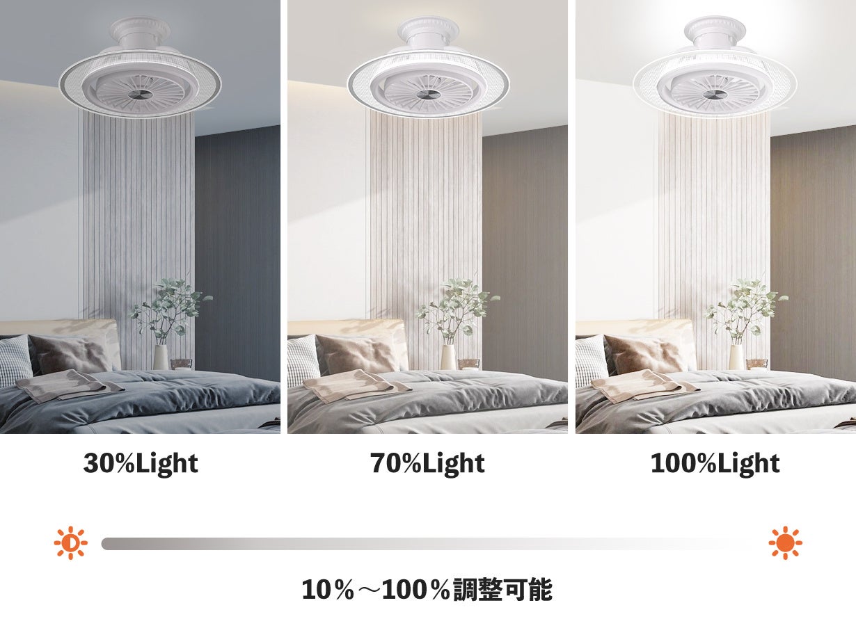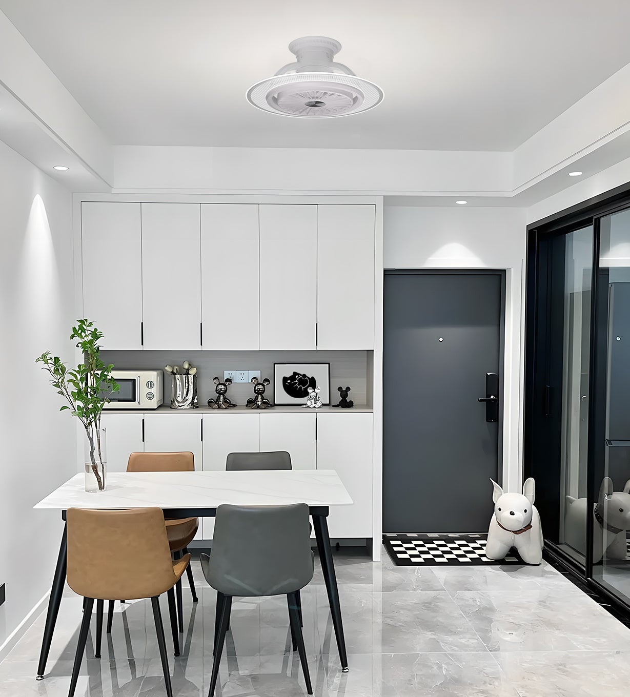 シーリングライト+ファン+サーキュレーター、3つの機能を一台で。天井に取り付けられるため、生活スペースを大幅に節約し、使用しないときもしまう場所を探す必要がありません。1台の装置で3つの異なる装置の機能を楽しめるだけでなく、お金も節約することができます。