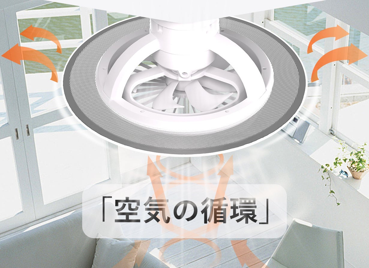 冷たい空気を上に吸い上げ、上からの暖かい空気を下に促すため、部屋の上下の温度差が少なくなり、より快適な空間が生まれます。